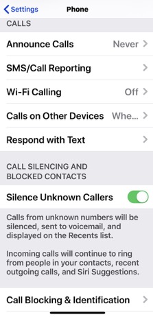 Silence unknown callers – this is a huge benefit.  If you receive a call from a number not in your contacts, it will send it to voicemail.  With the influx of spam calls, this is a feature you can turn on or off depending on how you handle your contacts.
