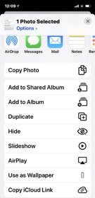 Share Menu – many more options. Swipe up to see them all.  Airdrop doesn’t take up as much space like it used to.