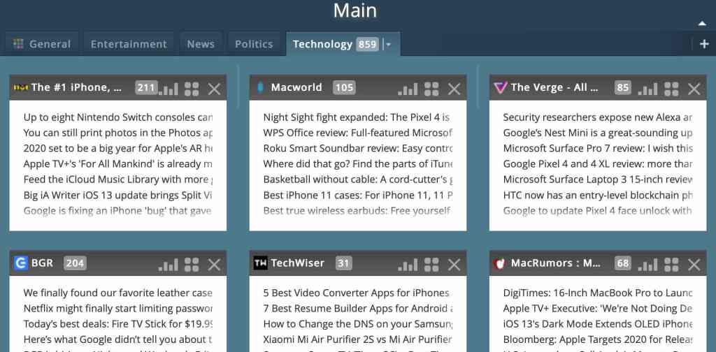 NetVibes (free): I first read about NetVibes in Wired Magazine in 2008. You create pages and then add modules you want to scrape. Below is a screenshot of my Technology page. Some websites have created a module/app, and some have to be setup as RSS (Really Simple Syndication) feeds. You can change the settings of each module to show more entries, show the first line of each entry, etc. You can modify how it looks with a theme and color scheme. (Google had a similar product for a few years, but deleted it.)